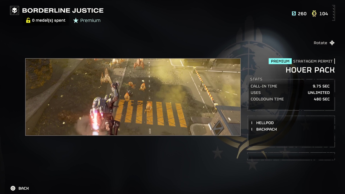| リフト-860ホバーパック | 3 | 110のウォーボンドメダル | 9.75秒 | 無制限 | 480秒 | | hellpod |バックパック |