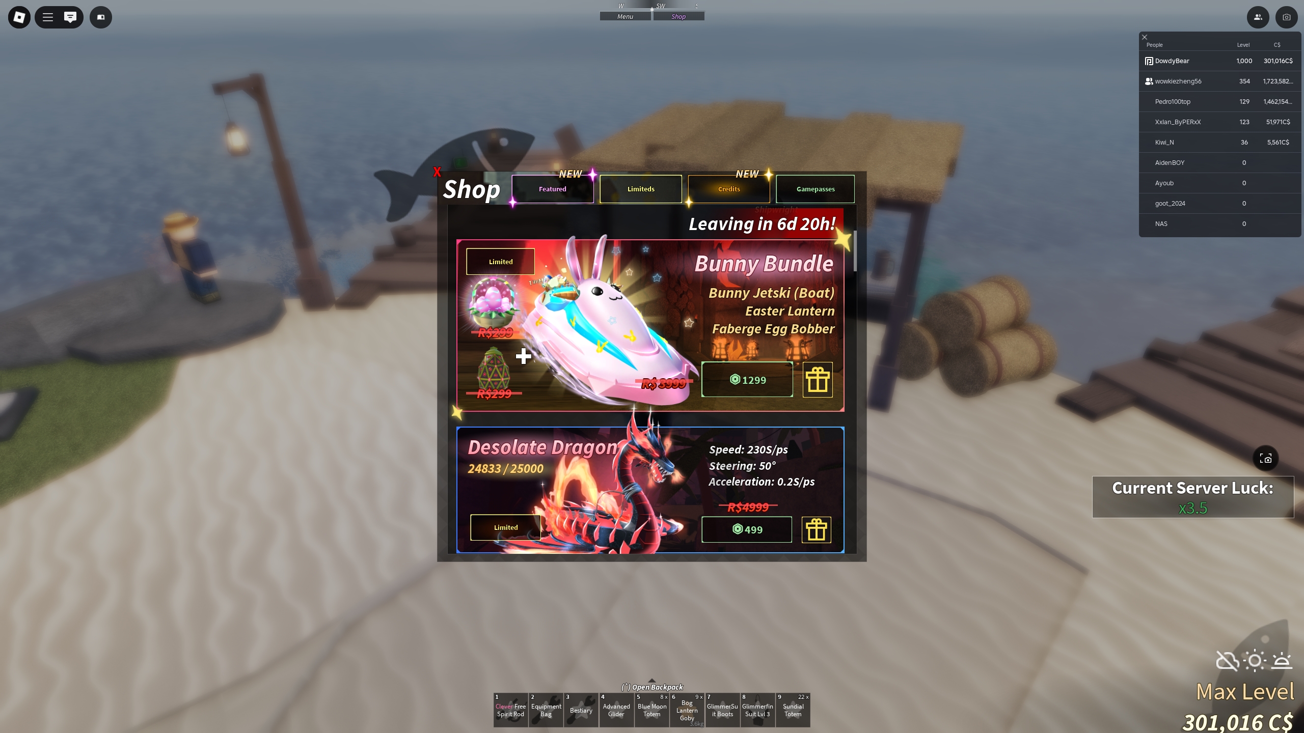 新しいアップデート、新しいプレミアムアイテム。しかし、卵のセールスマンはゲームから削除されました、これは開発者による珍しい(しかし歓迎されますが)動きです。次のアップデートまで、通常のスキン、ボーズ、ボートがあります。ただし、今回は、バンドル内で64xサーバーの運を取得していません。 Robuxで購入できるすべてのものがあります: