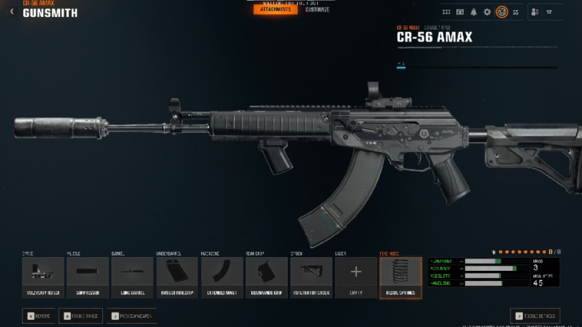 | ストック | バランスの取れた在庫 (ストラフィングの移動速度、移動速度、ヒップファイアの移動速度、目標の歩行速度) |
