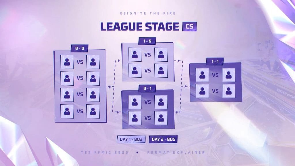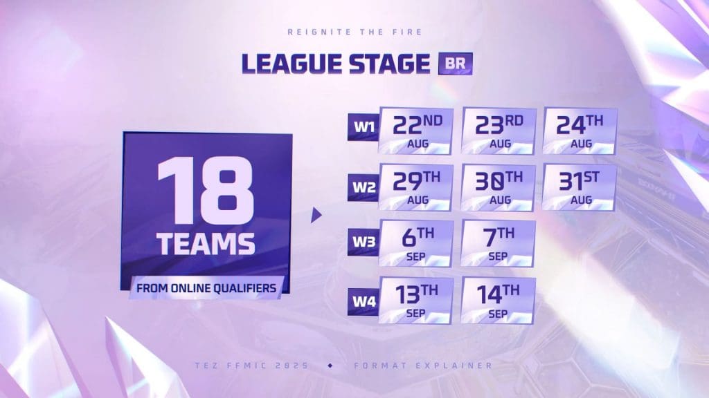Tez Free Fire Max India Cup 2025のリーグステージは、バトルロワイヤルとクラッシュスクワッドの2つの競争力のある形式に分かれています。オンライン予選から資格を得た合計18チームがこのフェーズに参加します。
