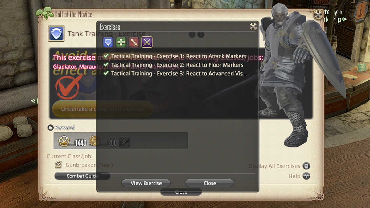 戦術的なトレーニングは、DawnTrailの一部として最近追加されたものを含むあらゆる仕事を使用しているプレイヤーが完了することができますが、個々のクラス(タンク、ヒーラー、およびDPS)トレーニングエクササイズは、Stormbloodまたは前に追加されたジョブによってのみ完了できます。