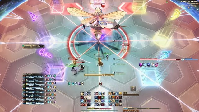 このフェーズはで始まりますCenterstageコンボ、この襲撃の野avなバージョンで導入された新しい攻撃。これは、M1SのBlack Catの枢機andおよび対角線AOEに似ています。攻撃は、ハニーBの下にある交差形から始まります。素敵です。彼女は立ち上げますこれらの線に沿ったコナールAOEまた、aを作成するスピン攻撃を実行しますリング型AoEアリーナの端の周り。彼女の近くに移動し、ピンクのラインの間のスペースに立ってください。