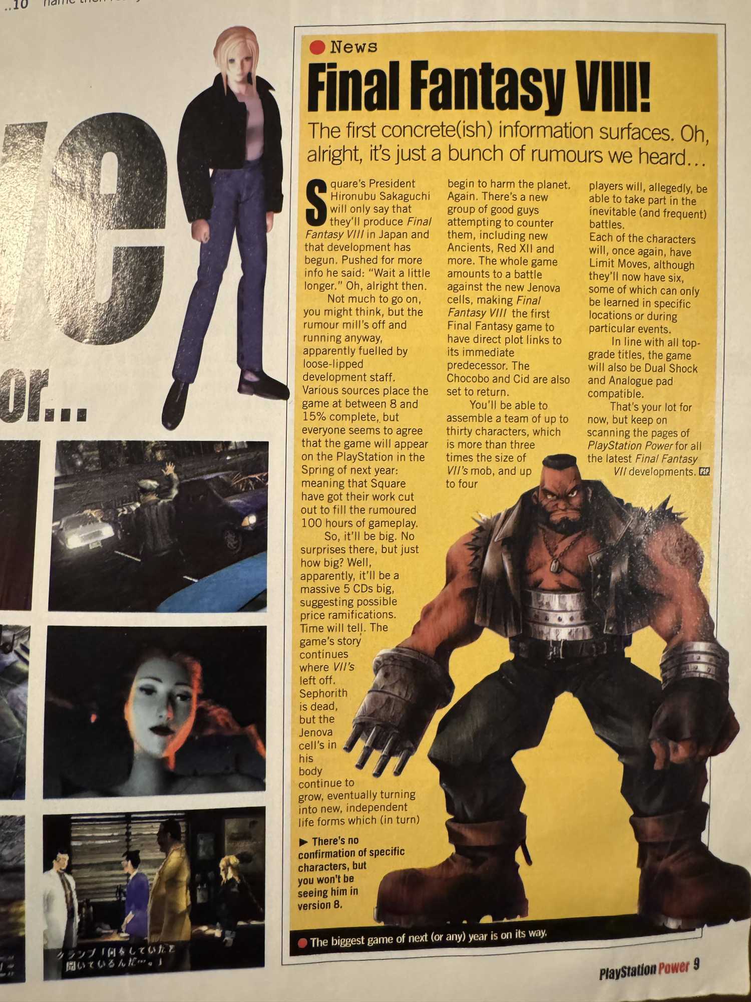 98年6月の時点で、ファイナルファンタジー8は8(HEH)から15%が完了しています。ゲームの長さは5枚のディスクになります。これは、Final Fantasy 7's Threeからの大きなステップアップです。とにかく、私の叔父はファイナルファンタジーがそのゲームまで存在しないと私に言ったので、それはFF7の直接的な続編です。私の叔父は間違っている、または嘘をついているという事実を知っています。私のいとこが彼のスーパー任天堂でファイナルファンタジー3を演じるのを見たので、彼はファイナルファンタジー1とファイナルファンタジー2もあると言ったので、ファイナルファンタジー7がはるかに大きいので、彼らは4、5、および6をスキップしただけです。