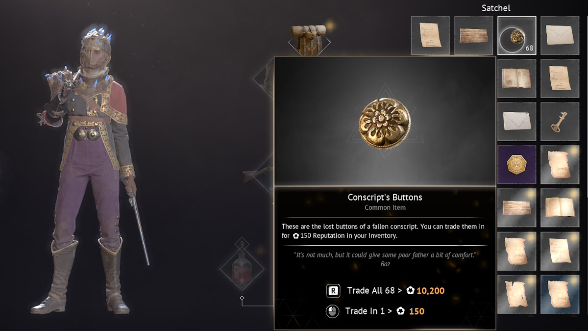 もちろん、適切に水平になった武器、ヘルメット、手rena弾も持っている必要があります。あなたがより多くの評判ポイントが必要ですすべてをアップグレードするには、残りの徴兵のボタン、アングル、その他のものを必ず使用してください。あなたは世界中のスケルトンやボディにそれらを見つけるでしょう、そしてあなたがそれらを拾うとき、それらはあなたの在庫のサッチェルに堆積するでしょう。それらを使用すると永久に削除されますが、大きな評判を高めます。