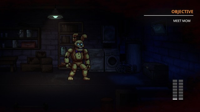 地下には恐ろしいアニマトロニクスがありますが、アクティブではありません。その後ろに行って、ドライバーをつかんでください。北の壁に沿って棚をチェックしてくださいトークンスロットを見つけますあなたも去る前に。ストーリーを続けるために、ドライバーで閉じ込められた子供に戻ります。これは夜を終えますしかし、そうです必要なものをすべてつかんだことを確認してくださいそうする前に。