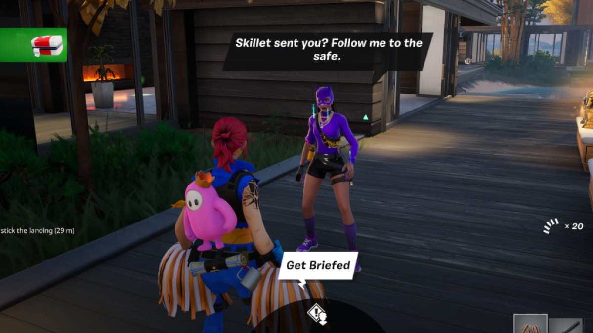 私たちが銀行の強盗から成功裏に引き離されたので、今こそ私たちの仲間を助ける時が来ました、ヴァレンティーナ、同じことをします。ヴァレンティーナはずっとあります無法者のオアシスフレッチャーケインの個人的な金庫をターゲットにするので、この段階を開始するために、Fortniteの地図の西側に向かいます。
