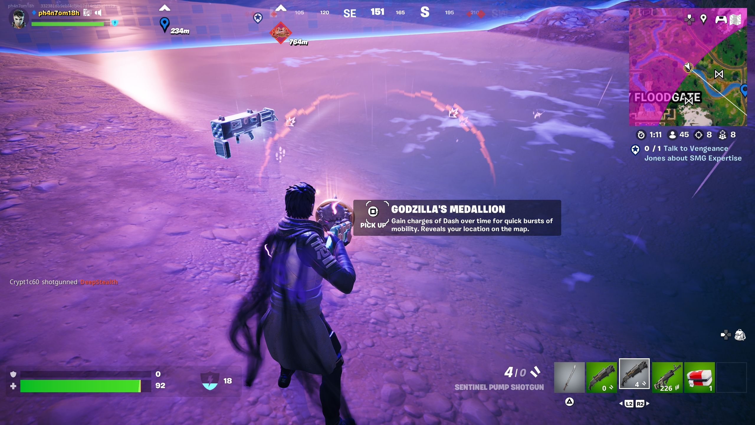 これは、以前のものへの直接的なフォローアップクエストです。ゴジラの断片を消費することで得られたダッシュを使用しますそして実行します3つのダッシュ。