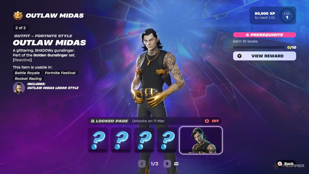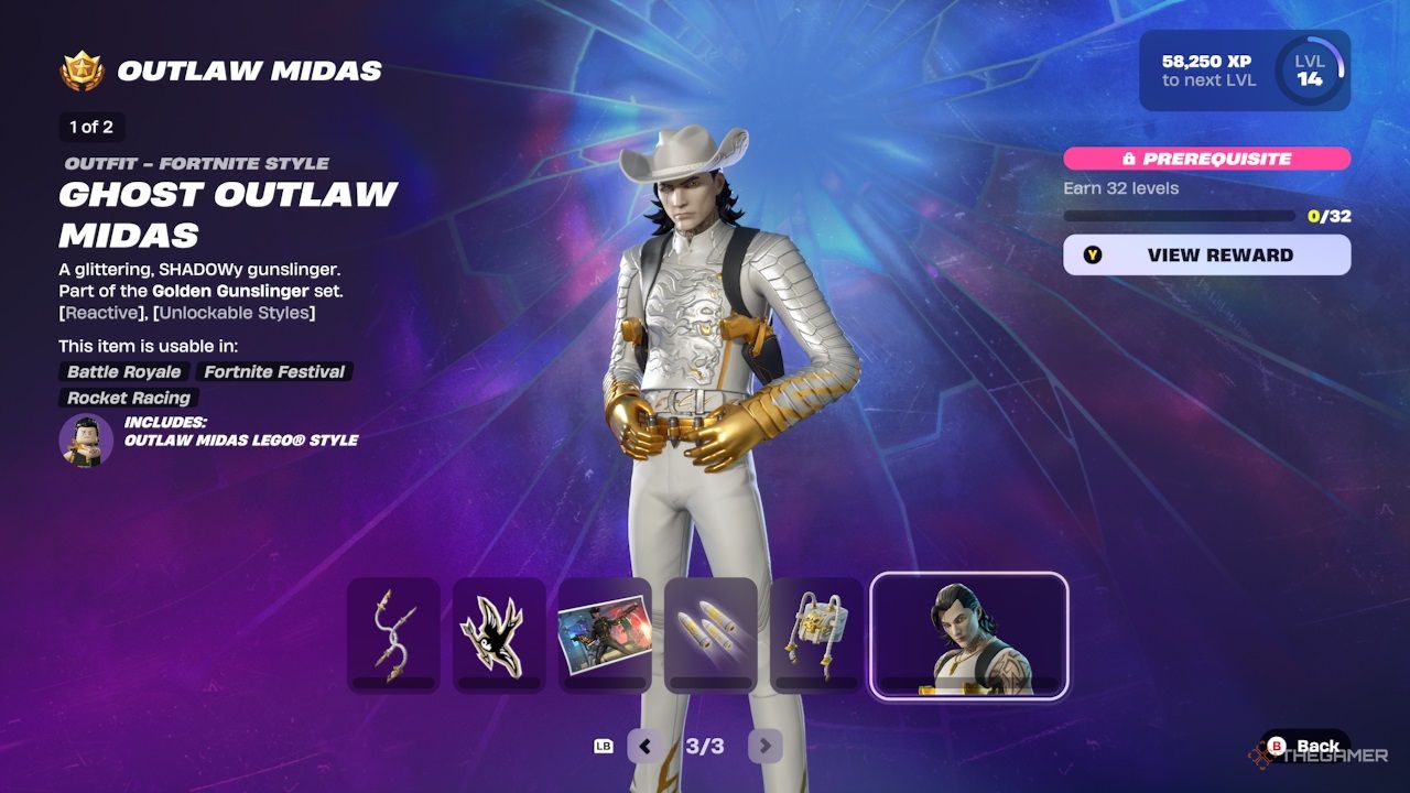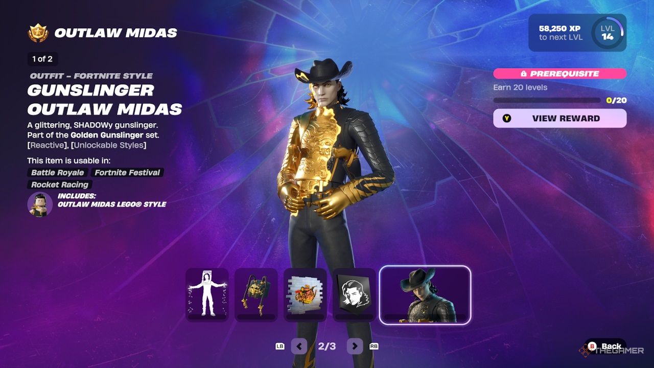 Outlaw Midasの報酬は205年3月11日から利用可能になりました。すべての報酬を解き放つには、合計32レベルを獲得します。