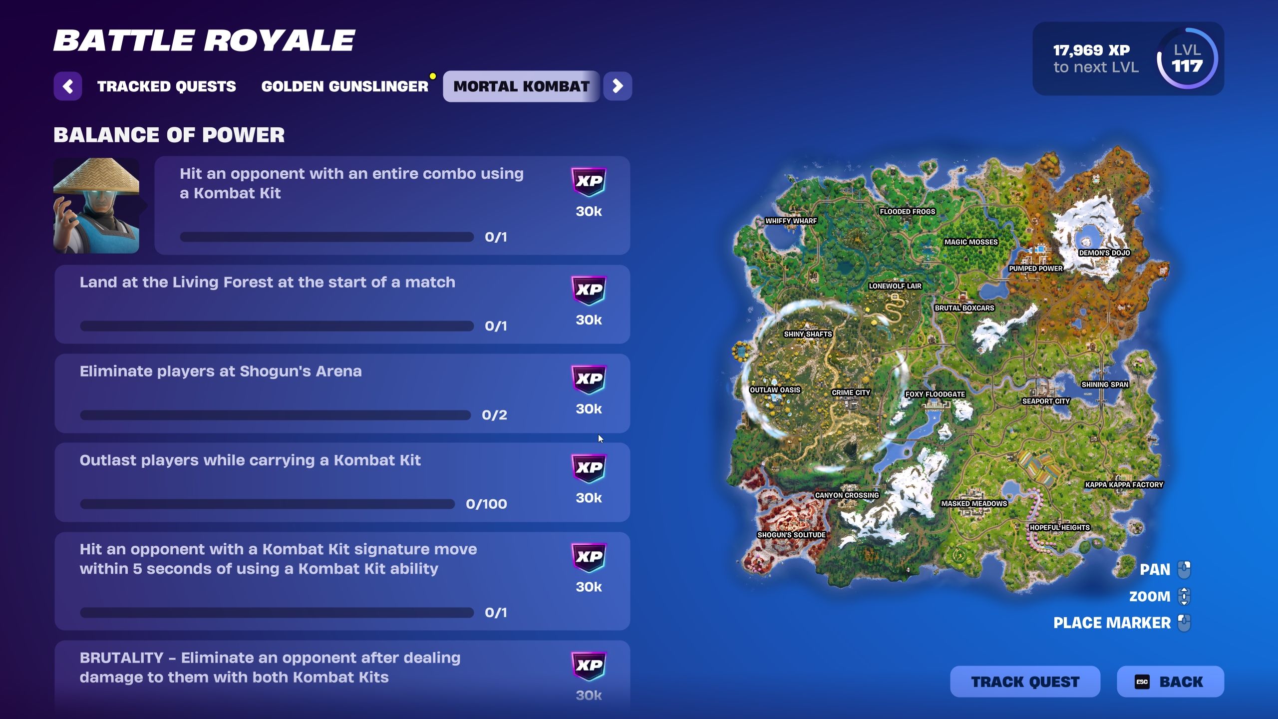 Kombatキットを使用して、コンボ全体で対戦相手をヒットします。 | ScorpionのKombat KitまたはSub ZeroのKombatキットのいずれかを使用してください敵に完全なコンボを着陸させます。 | 30k xp |