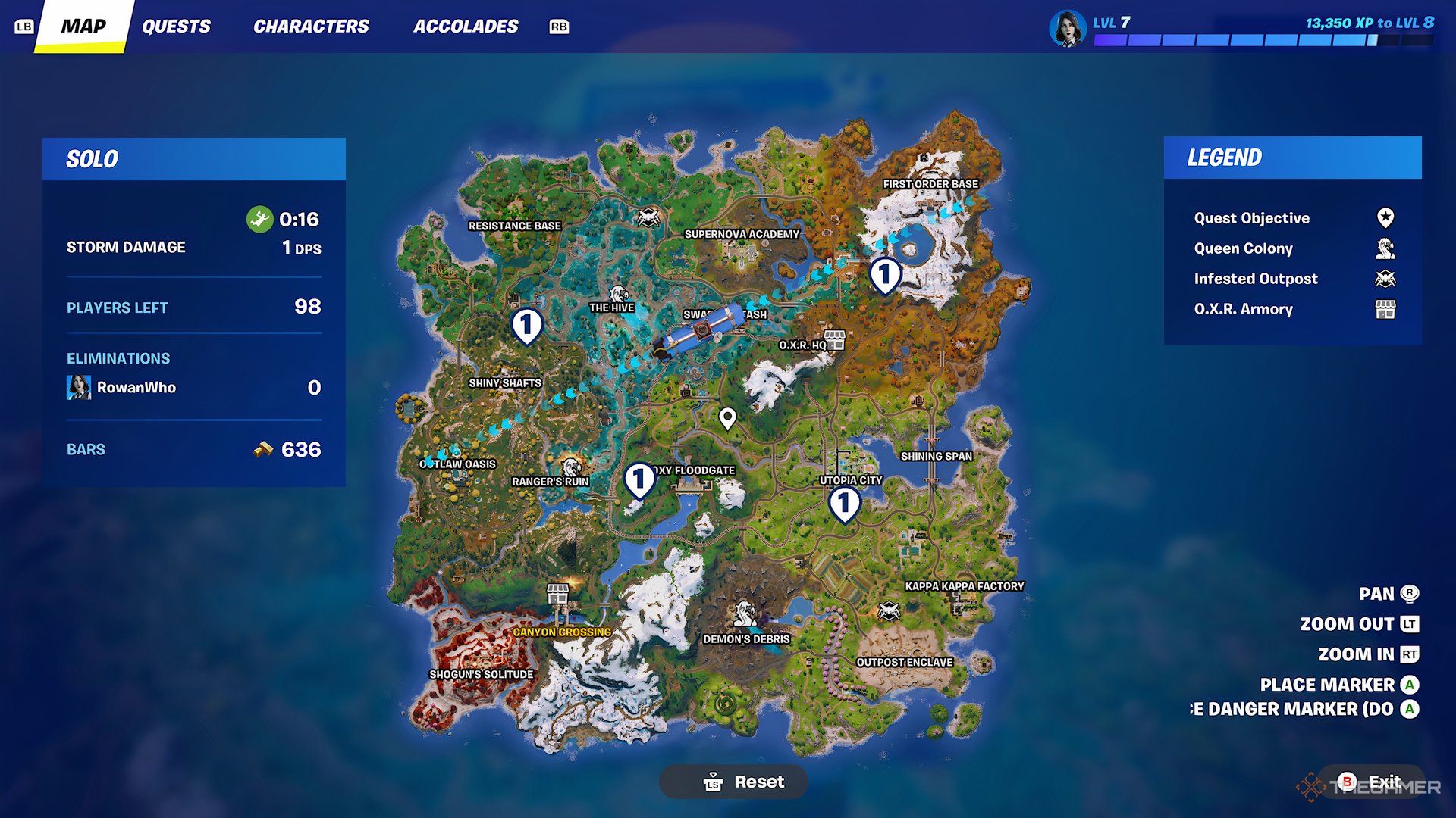 その後、最寄りの巣に向かう必要がありますバグを排除し、巣とハイブの隠し場所を破壊します。の場合女王はまだ敗北していません、彼女を倒すと、あなたの目標に向かってさらに200 xpを獲得できます。アウトポストからハイブへの進みに集中し、パス内のすべてのバグを破壊することに集中すると、OXRランクは非常に急速に増加します。