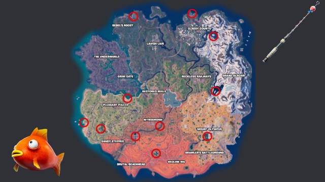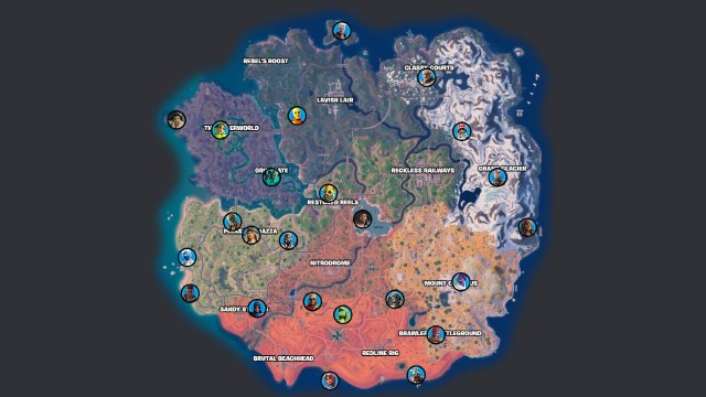 このクエストを完了するために試合でダメージを与える前に、NPCに相談してください。 Fortnite.ggの厚意により、上記のFortnite第5章シーズン3のすべてのキャラクターの場所を見つけることができます。