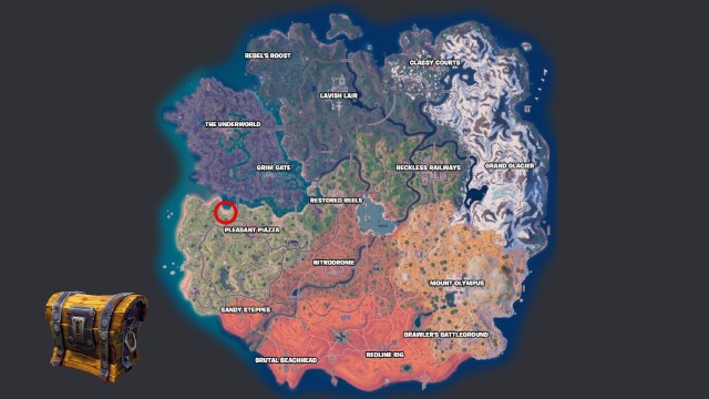 「レアまたは埋もれた宝箱を検索する」クエストを完了する最も簡単な方法は、プレザントピアッツァの近くの小さなビーチ。バレーボールコートは常に宝物を埋めていますチェスト、見つけるために宝の地図を必要としません。