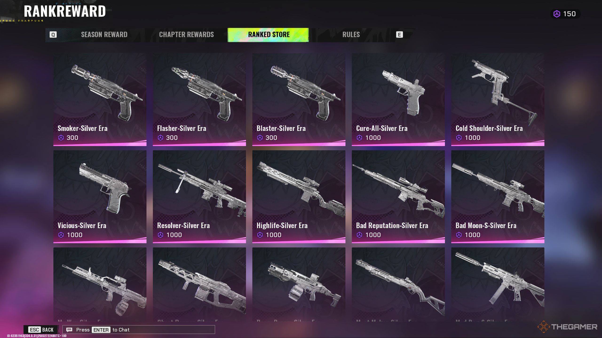 これらのランク付けされたコインは費やすことができます武器の皮に、これは、前述のランク報酬と同じメニューで、またはランク付けされたページのタブのタブの下のストアで表示できます。