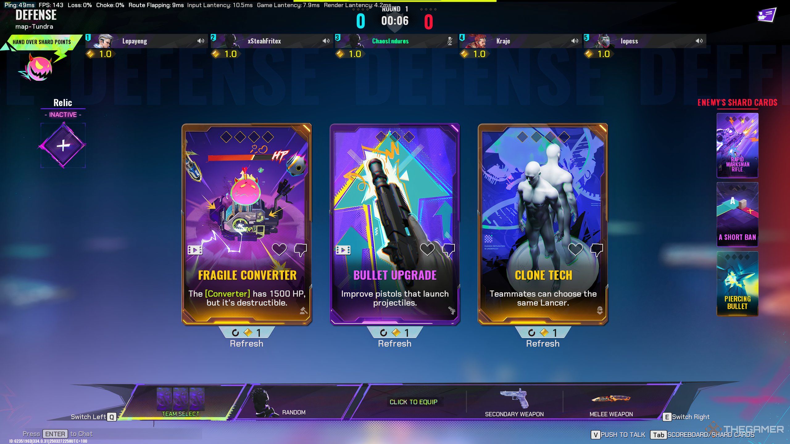 あることに留意してくださいハーフタイムまで通過する必要がある5つの試合、つまり、それまで4つの武器を失うことができます。このため、摂取することをお勧めします一度に特定のカテゴリから1つの銃、したがって、特定のカテゴリをバフするシャードカードがアクティブになると、お見逃しなく。