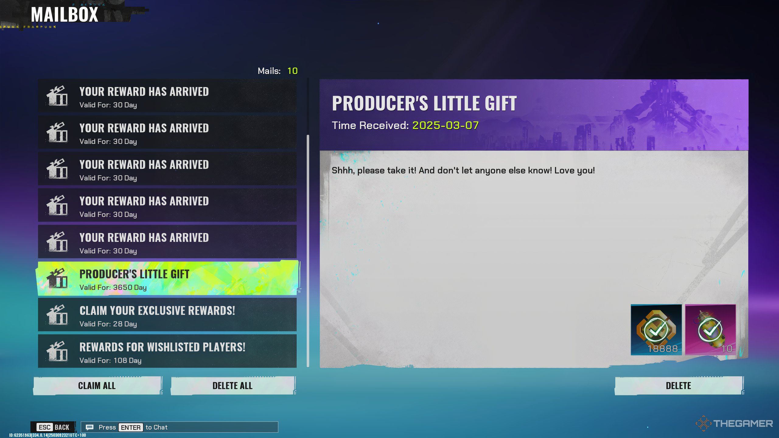 メールボックスにあなたが見つける手紙があります。ランサーを購入するのに必要な金の正確な量(18,888ゴールド)、10の好奇心ポップ缶と並んで。