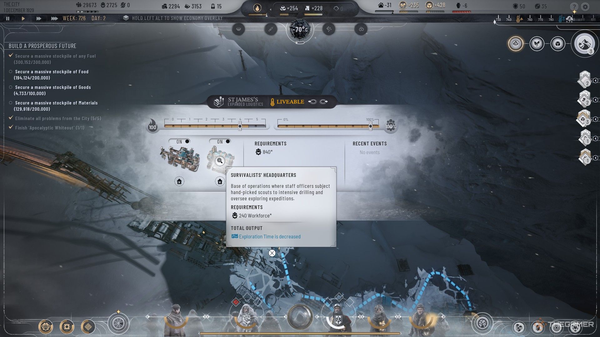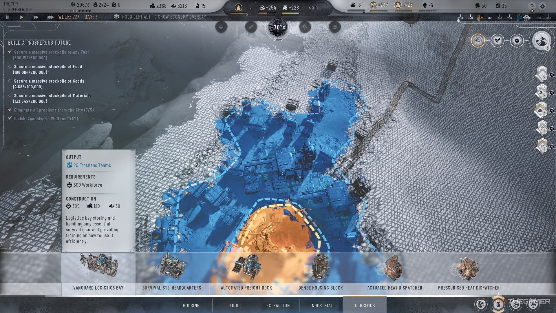フロストランドのエリアは探索に10人未満のスカウトを必要としないため、ロジスティクス地区は15人のスカウトしか提供していません(拡張なし)、2番目のロジスティクス地区を建設したり、ロジスティクスベイを設置したりしない限り、多くの場合、探査と前postのリソースを選択する必要があります。