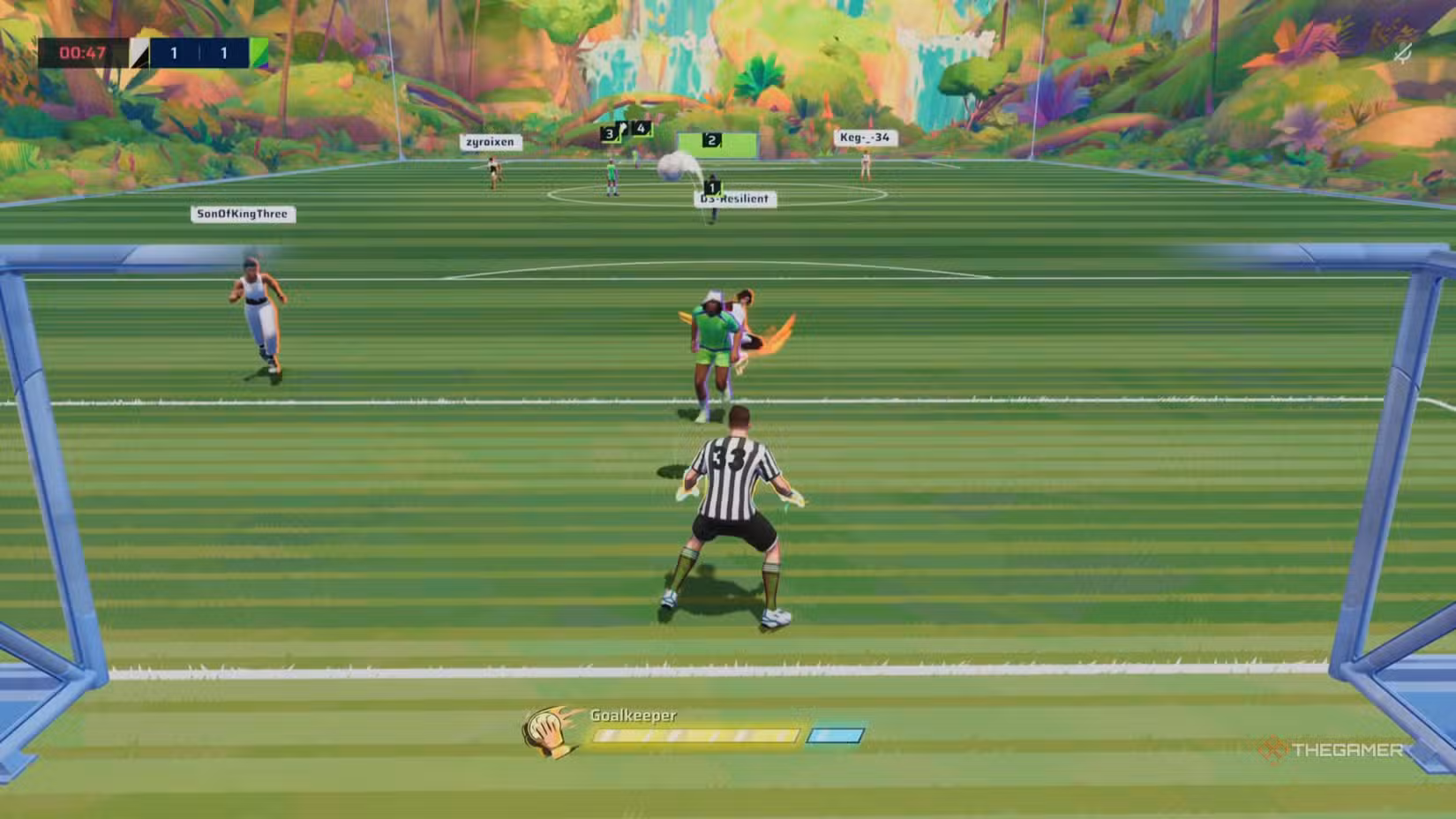 しかし、再戦はそれを勝ち取りました。 Rocket League But Football がすでに Football But Cars であることを考えると、Rocket League But Football はばかげているように聞こえますが、アーケードの電光石火のペースは他の方法で要約することはできません。ファーストマンバックのゴールキーパーのノスタルジーと、ボールをパスするためのあらゆるトリックを備えた子供への叫び声で、Rematch はほとんどのマルチプレイヤー ゲームが期待できるよりも長く私の注意を引きつけました。