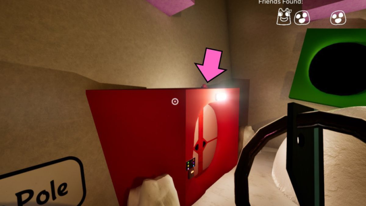 - 赤いドアを通り抜ける前に、正しい道そして、あなたは少し光のスライバーがやってくるのを見るでしょう。その隣の壁にはかなり上の壁には、オープンする別の読者があります秘密のドアそしてあなたに与えますハンマー。これは、その秘密の紫色のキーカードとともに役立ちます。
