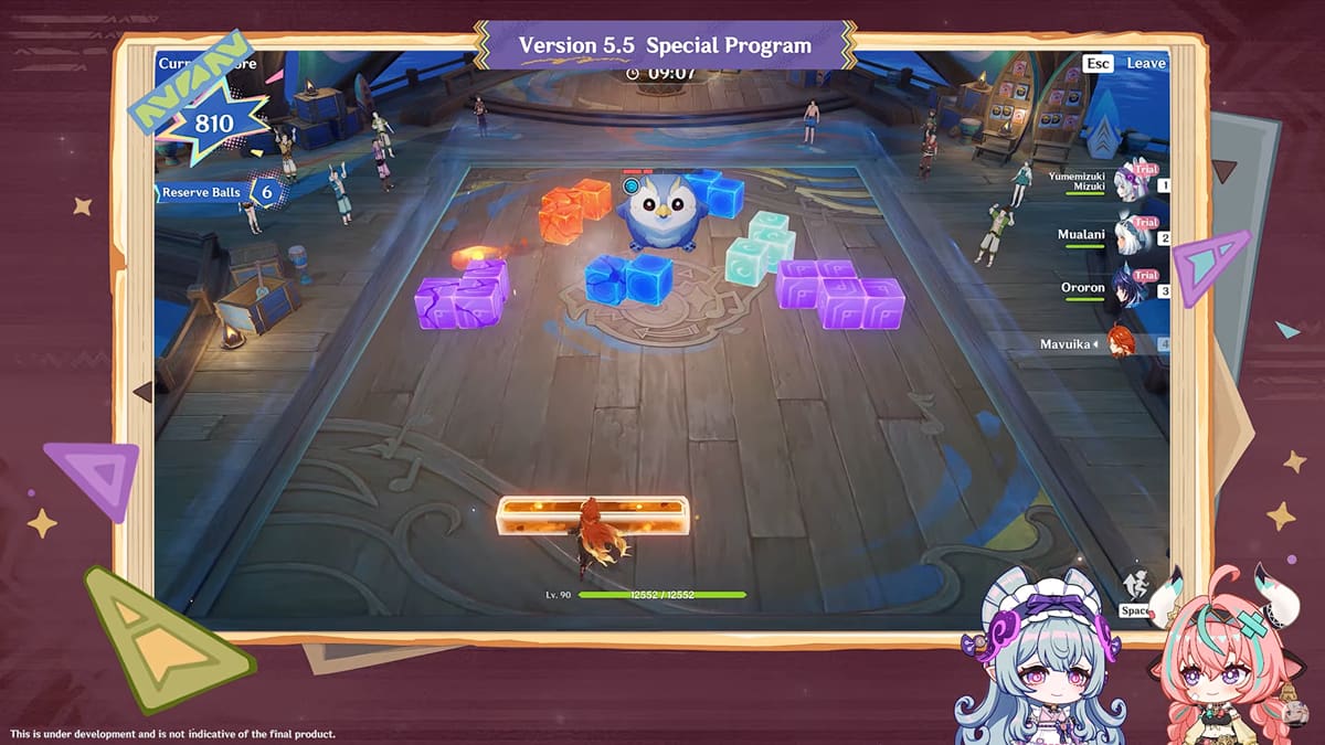 リズムボールMeztliは、もう1つのマイナーなGenshin Impact 5.5イベントです。この場合、パドルで入ってくるボールを打つことでブロックを粉砕する必要があります。また、アクティブなキャラクターの要素タイプに応じて、パドルの要素が変化することにも注意する必要があります。これは、ブロックを破壊し、アリーナの反対側のボスを倒すための元素反応を引き起こすのに役立ちます。