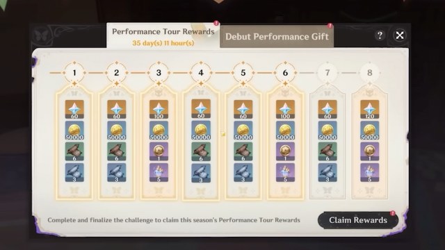 誰もが興奮するべきことの1つはパフォーマンスツアーの報酬これらの課題を完了することで得ること。合計で、最大8セットのパフォーマンスツアーの報酬を獲得できます。これらの報酬以外に、あなたも受け取ることができますパフォーマンスギフトのデビュー初めて行為をクリアするため。これがあなたが獲得できるすべての報酬を紹介します: