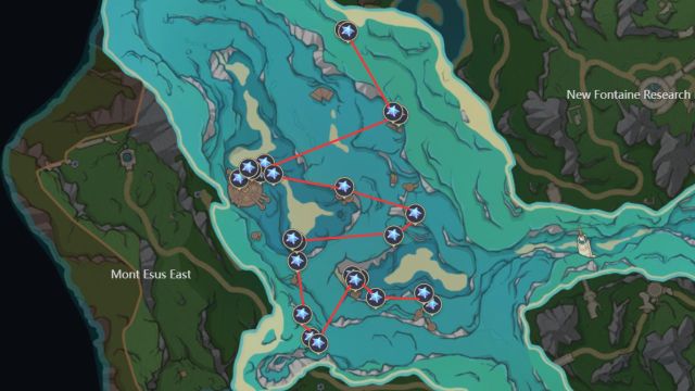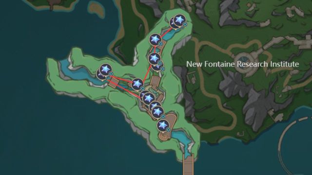 新しいフォンテーヌ研究所の海岸に沿って、あなたは周りに見つかります21 Lumitoiles。これは、フォンテーヌのこの島の海岸沖の比較的直線を通り抜けることができるので、これは簡単なルミトール農業ルートの1つです。