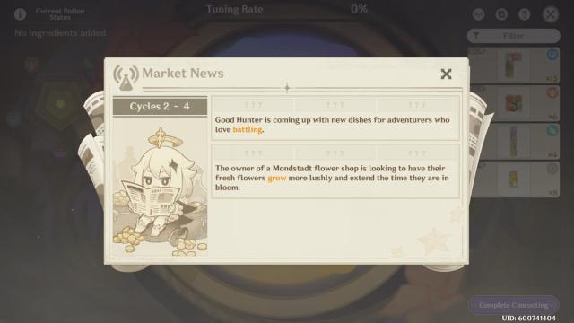 Genshin Impactの錬金術のアセンションイベントは、Potion Shop Keeperの役割にあなたを落とします。最大の利益を確保するには、Trending Market Newsに従ってポーションを作成する必要があるため、Genshin Impact Potionイベントで各ポーションを作成する方法は次のとおりです。