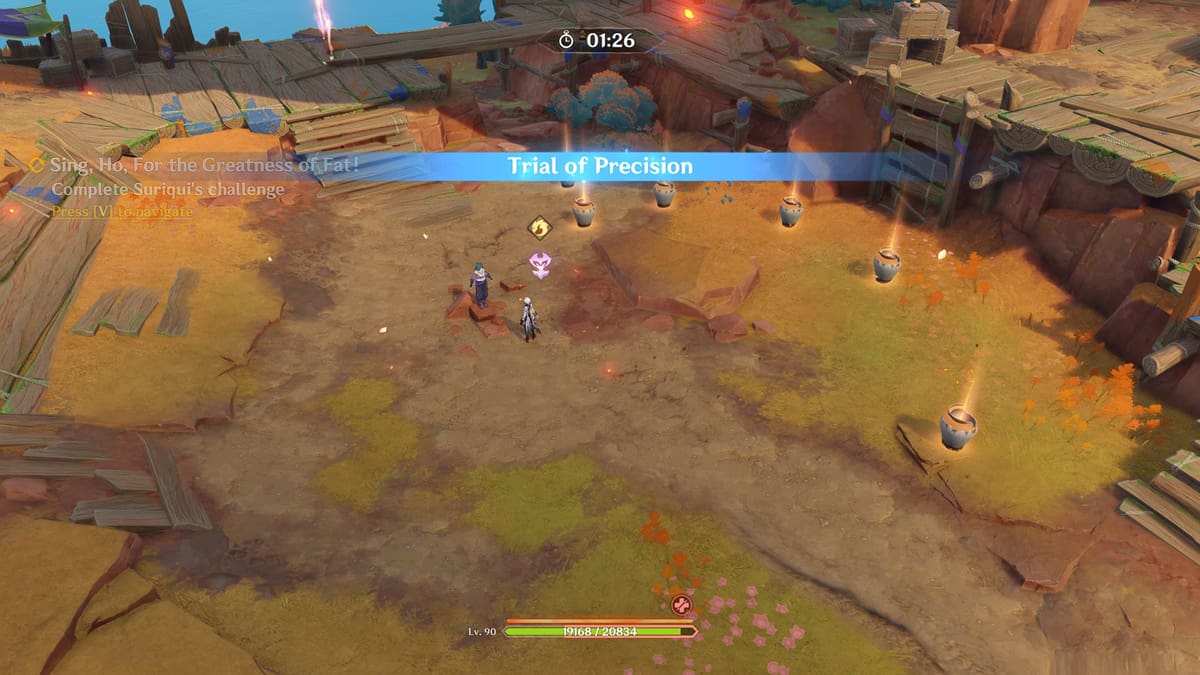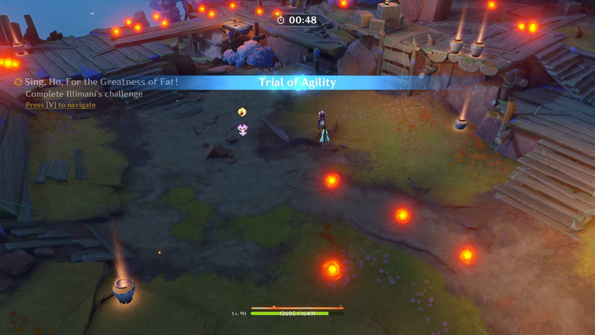 クエストの場所に戻り、イリマニと話して彼の挑戦を始めましょう。今回は、制限時間内に瓶を壊すことなく、すべての赤い粒子を収集する必要があります。また、簡単な課題であり、エリアを走り回ることで簡単に完了することができます。それが完了すると、5つのPrimogemsに相当する別の絶妙な胸の報酬が得られます。