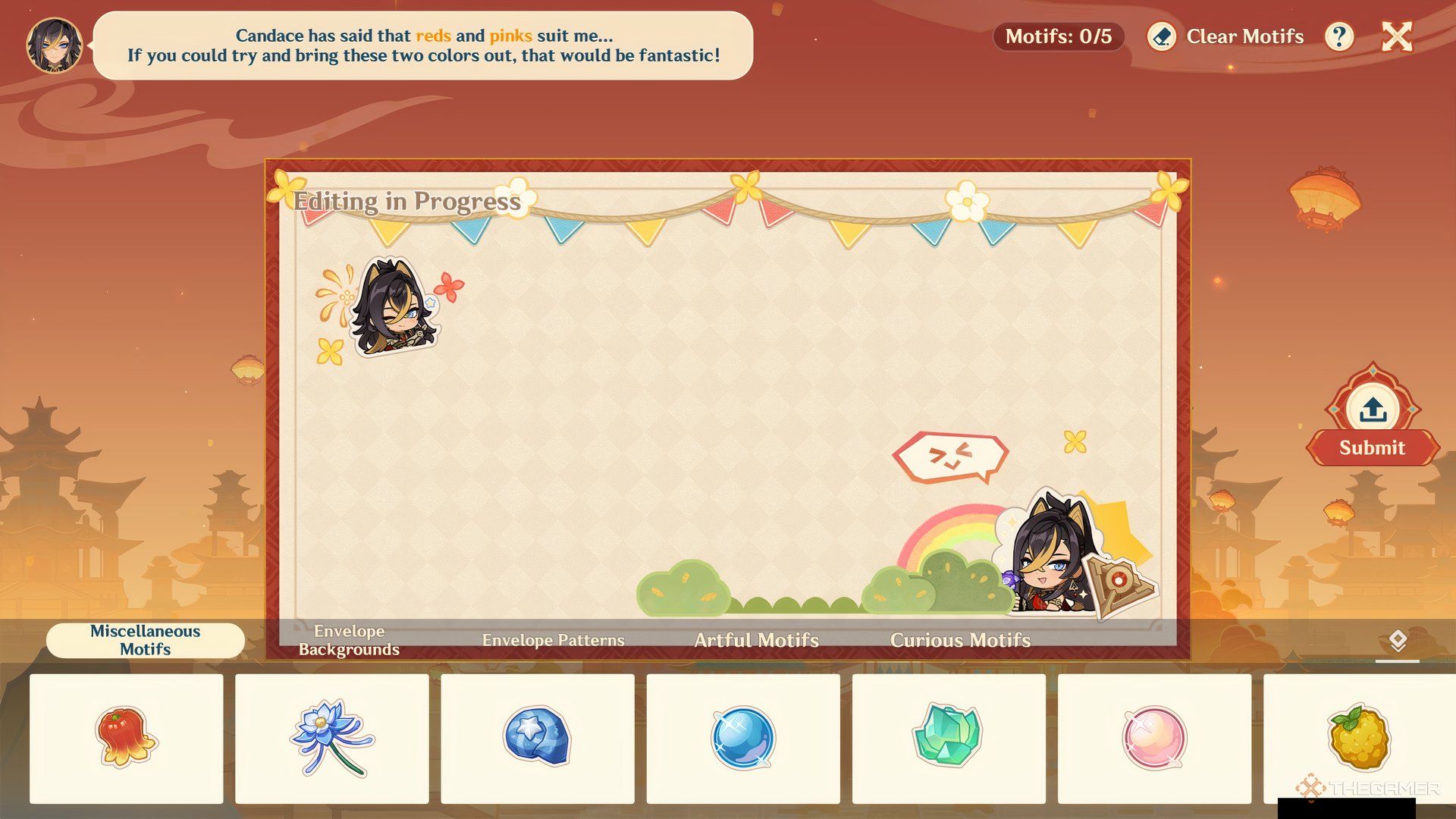 dehya | Dehyaは、封筒をテーマにしたものを望んでいます 赤とピンク | 赤またはピンクのステッカーを使用してください タスクを完了します。 |