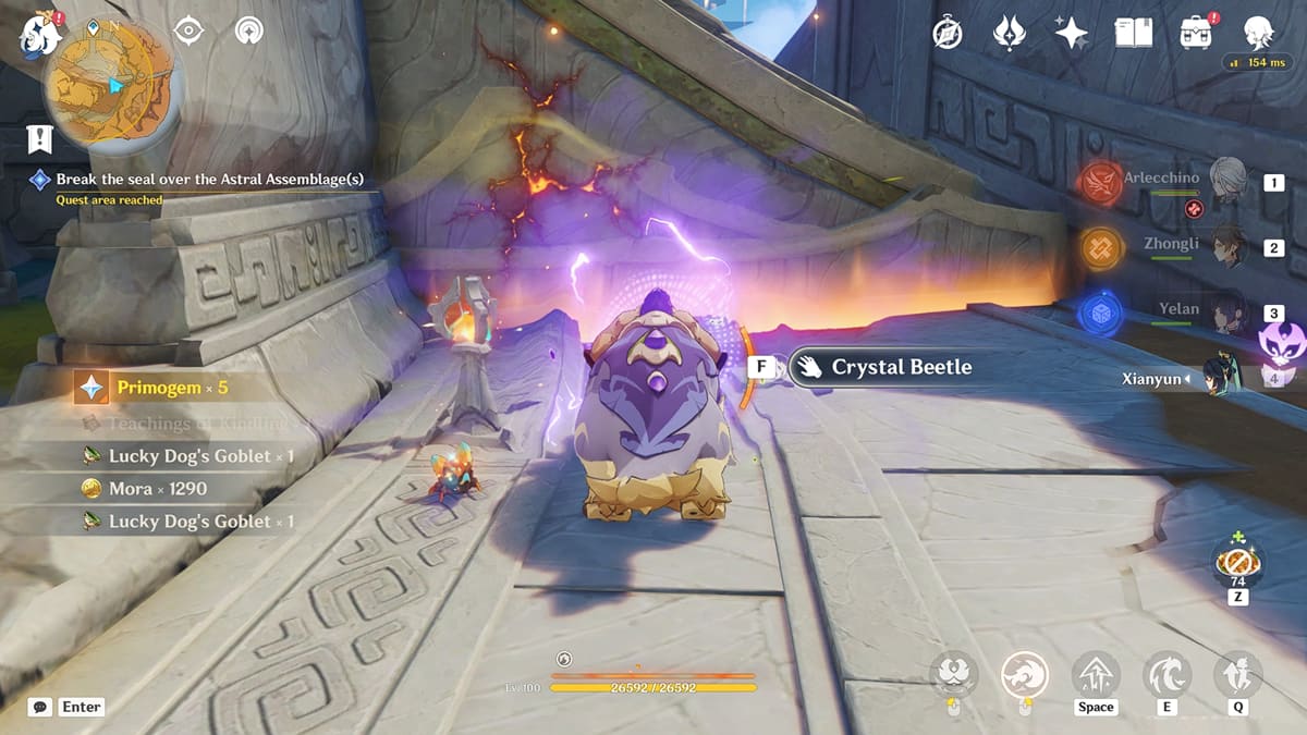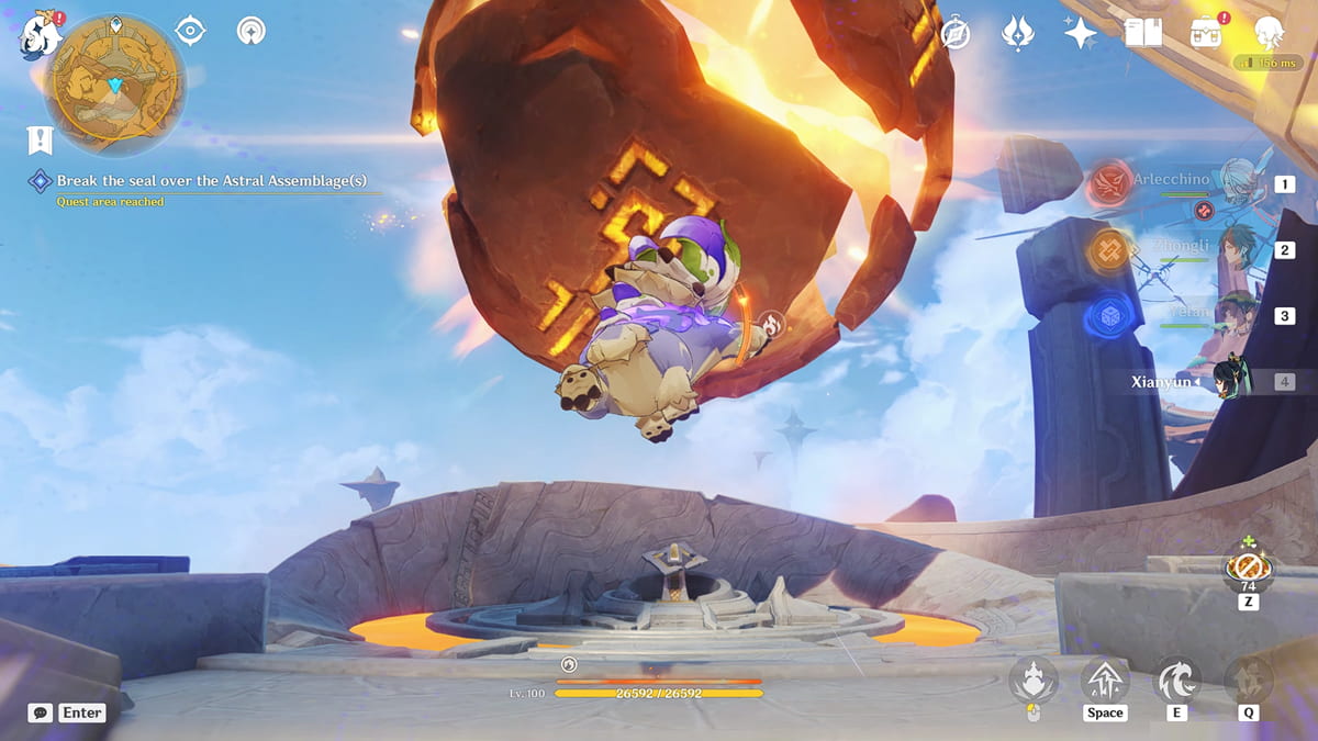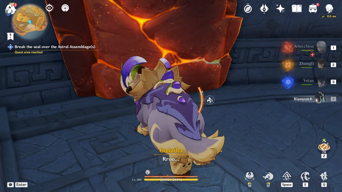 最後に、タタンカサウルスを再びインドウェルして、シールに向かって突撃します。シールが壊れたら、アストラルの集合体を作動させて、Genshinの衝撃で犠牲の密閉されたサイトを完成させます。