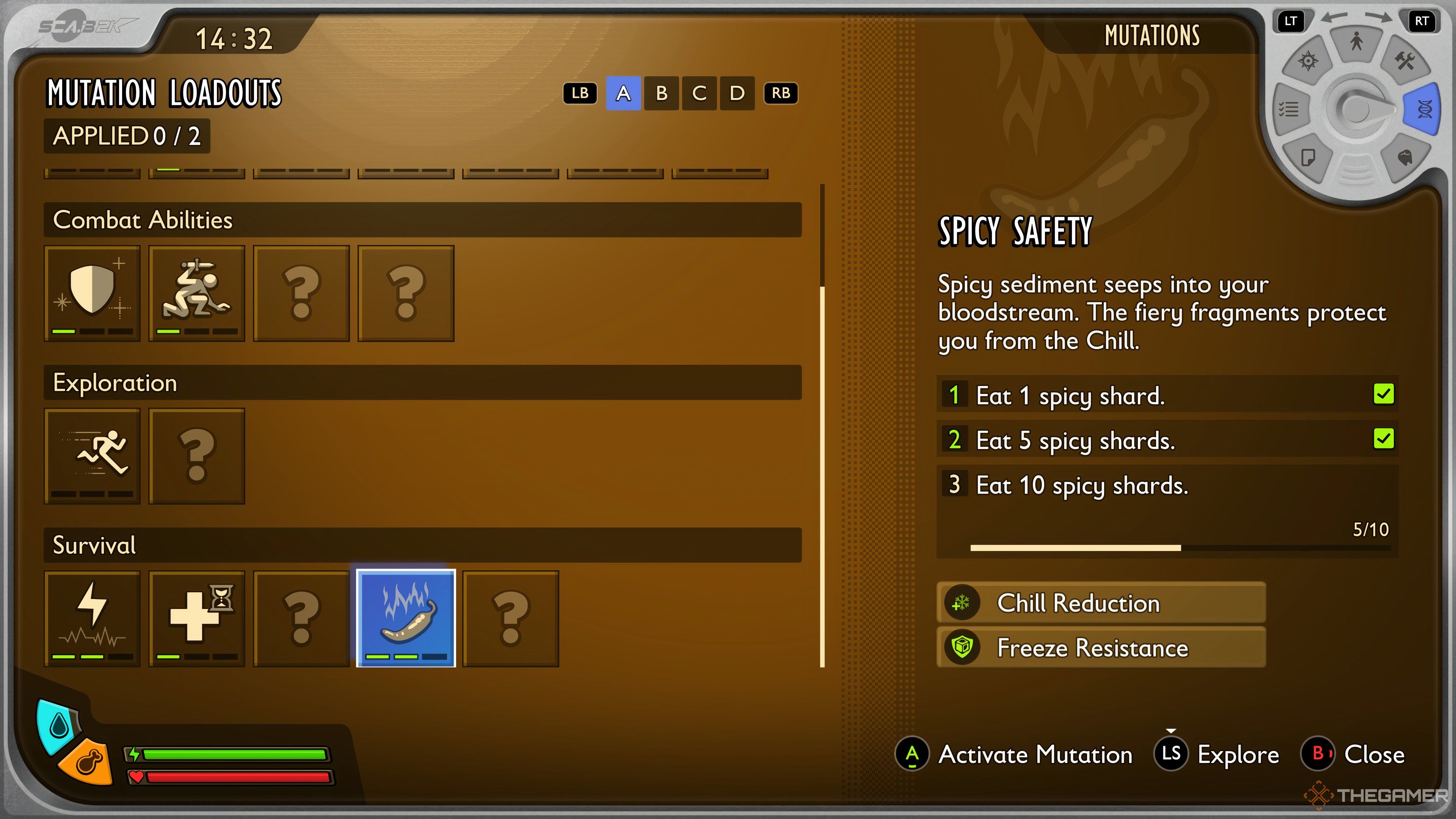 あなたがすべき探索のロードアウトにスパイシーな安全変異を装備し、特定の場所でのみ必要であり、他の変異よりも永久に使用する価値はないためです。