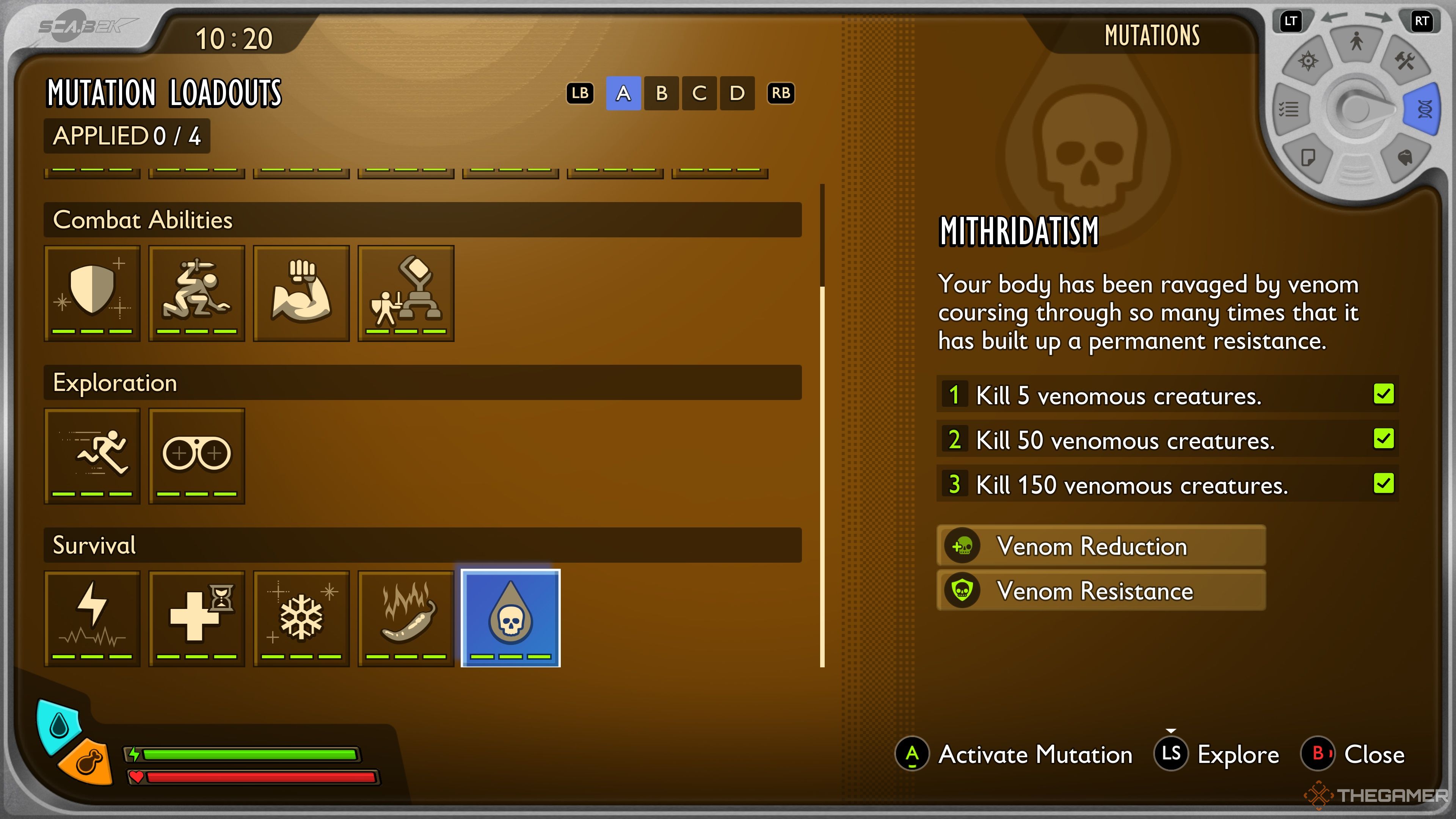 あなたの敵を知ることは、ロックを解除するための鍵ですミトリダチズム変異、提供します毒の減少、のように さそり座など毒抵抗、どれの減少しますダメージあなたは取る毒から。