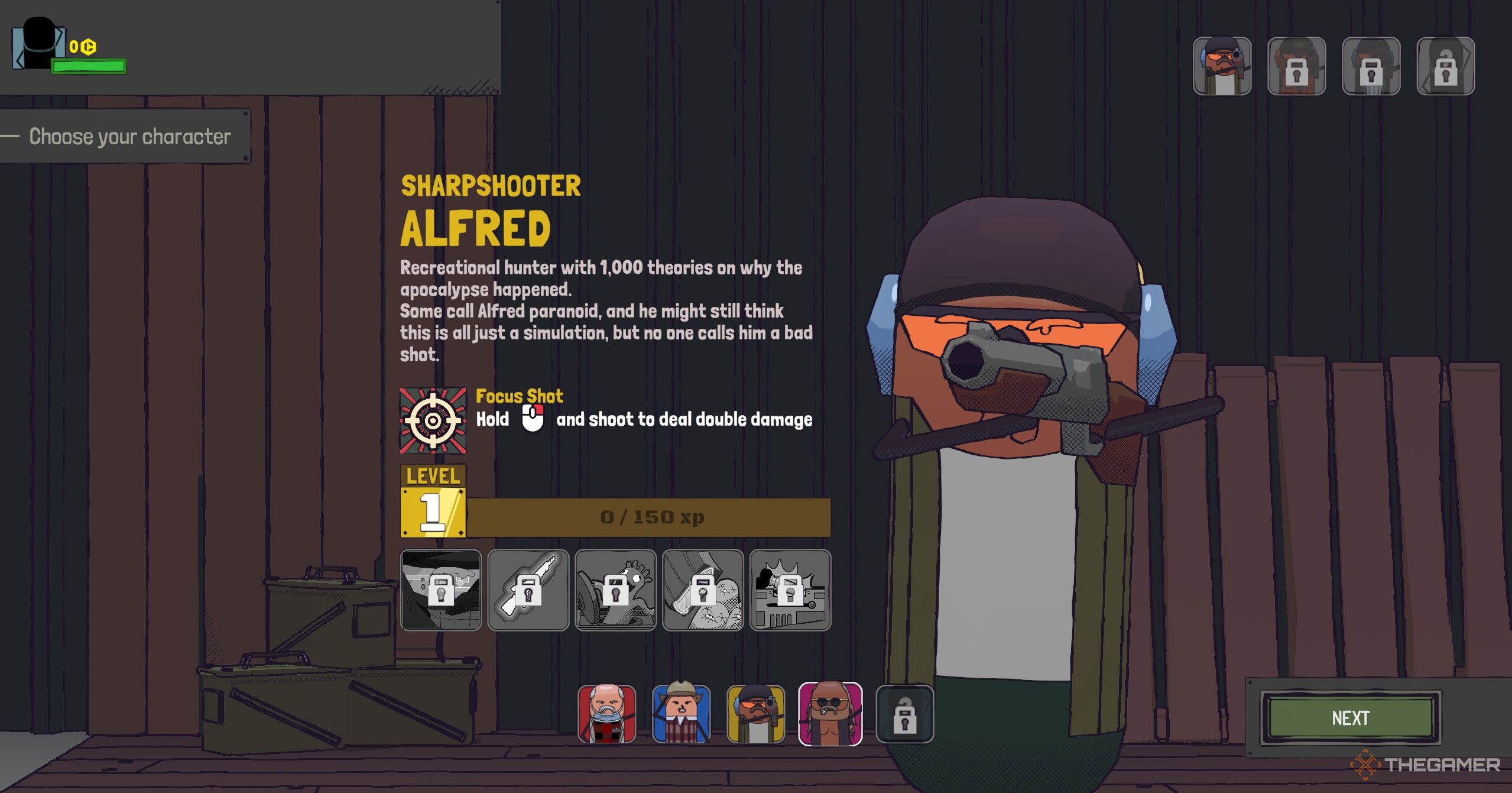 - Alfred(Sharpshooter)を選ぶあなたが望むなら遠くにとどまるそして高いバーストダメージを与えます。彼のフォーカスショットはタフな敵を素早く落とすことができ、彼がレベルアップすると、彼のより良い視認性と武器のスケーリングは彼を強い選択にします。
