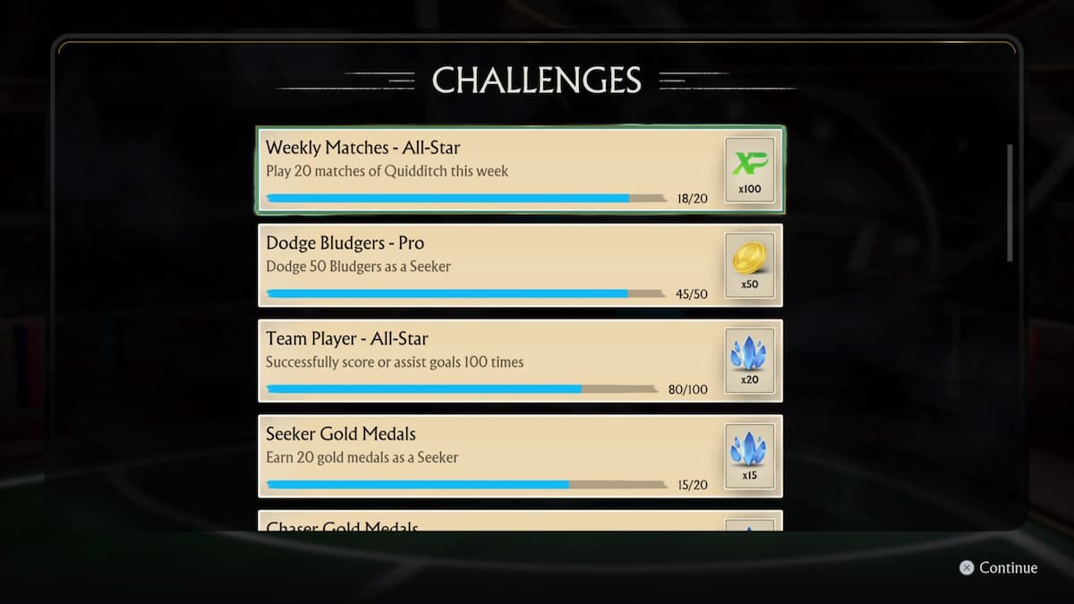 課題を完了することは、特定の報酬を得るための優れた方法です- ムーンストーン、金、翼のある鍵、スキルポイント- 一定数の目標を獲得したり、金色のスニッチを収集したりするなど、個々のスキルが必要です。
