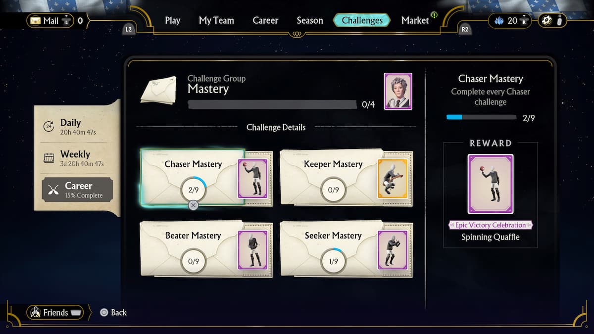 チームベースの課題は、Quidditchチャンピオンで一般的です。 PVPマッチ(オンラインマルチプレイヤー)でのプレイに焦点を当てて、課題を完了し、より良い報酬を獲得します。