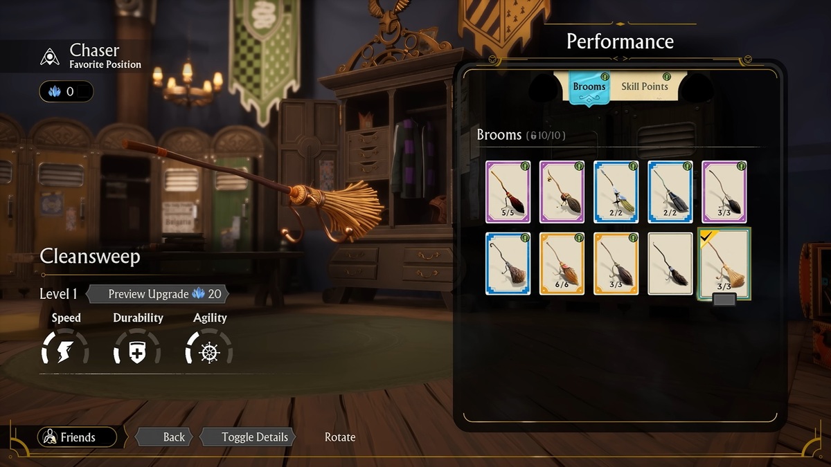 FireboltやSwiftstickなどのほうきは、速度の点では少し極端すぎるかもしれませんが、Cleansweepのほうきは、取り扱いに関してはるかにバランスのとれた体験を提供します。それは私がすでに述べた他のオプションほど速くないかもしれませんが、それは間違いなくマッチアップのあらゆる役割に良い選択です。このほうきには、ロックを解除するために3つの利用可能なスキンがあります。
