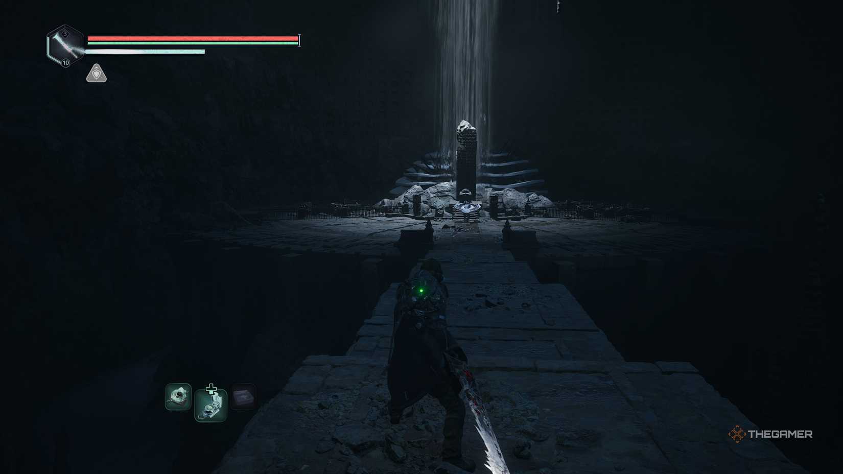 タイムループはシノン湖にあると分類されていますが、どちらもリンビックフォージの下に深くなっています。 1つ目が見つかりました滝の墓で、滝のすぐ後ろ。彼の墓のアミンプリズムは、まさにあなたがそれを閉じるために必要なものです。