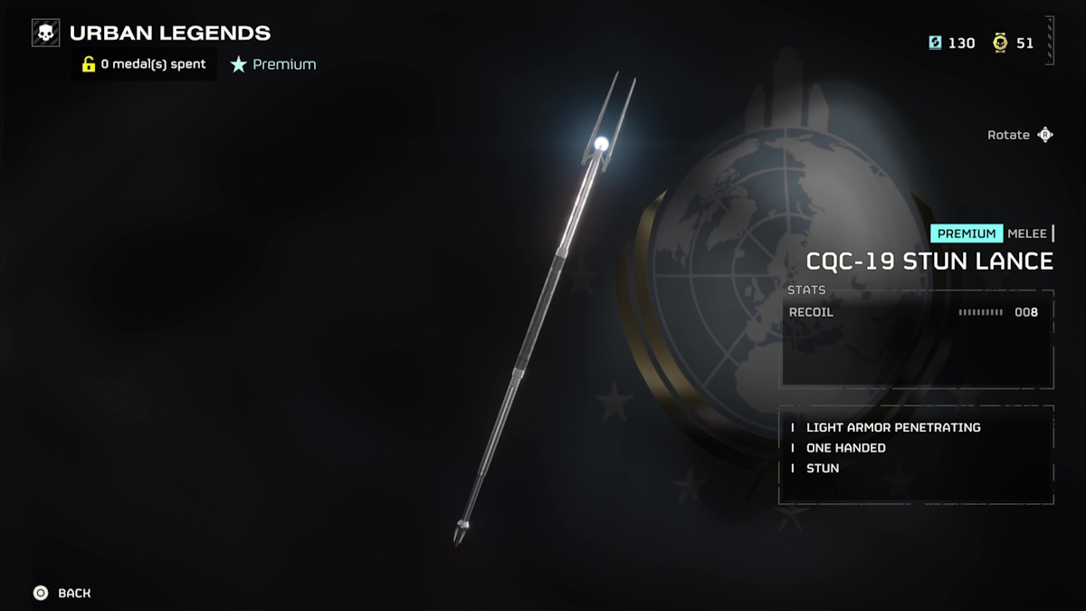 都市の伝説では物事は少し異なります。ウォーボンドは、典型的なものよりも少ない武器を持ち、物事のバランスをとるためにより多くの戦略を提供します。ゲームの最初の格差のみの武器であるCQC-19スタンランスを紹介します。