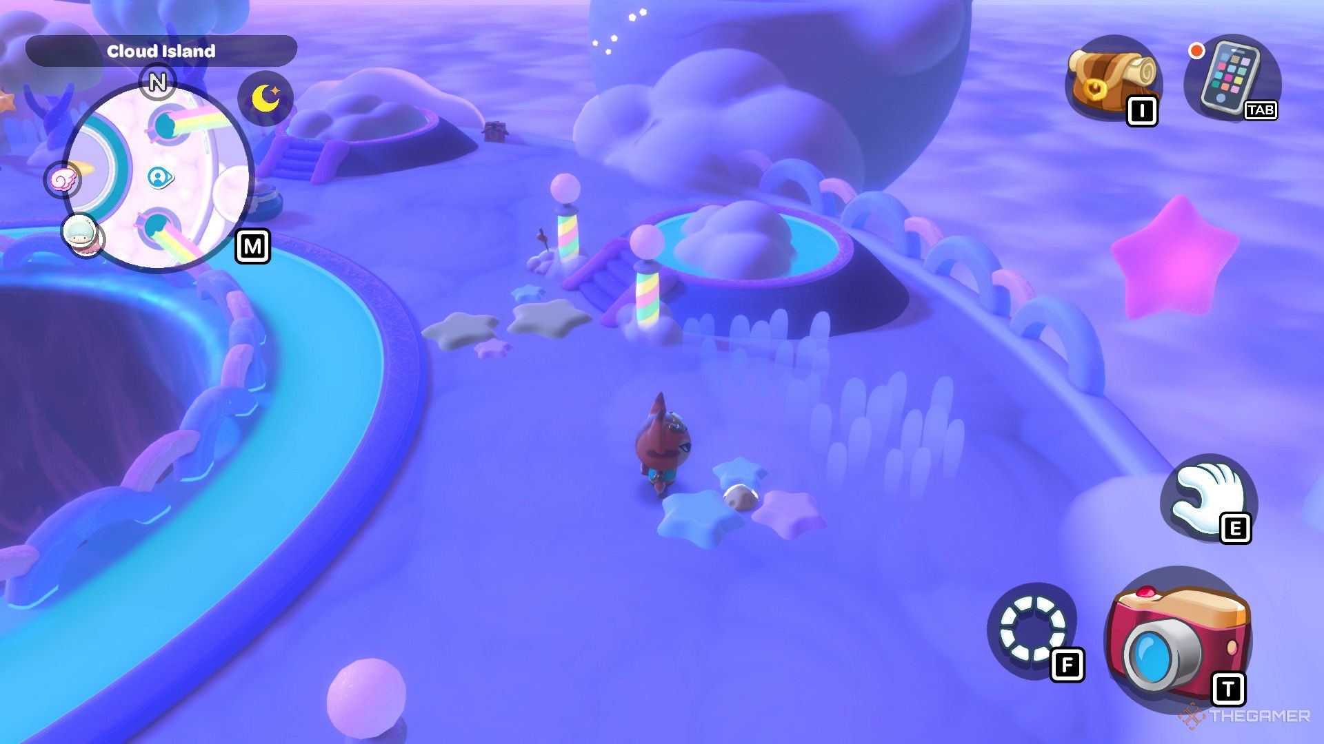 暗くなったら、ハローキティに会うためにムーンアイランドに移動します。チャットの後、Sky Fragmentsは友情の島のさまざまな時点で落ち始めます。それらをすべてあなたのマップにマークされるので、それらを収集するのは簡単です:
