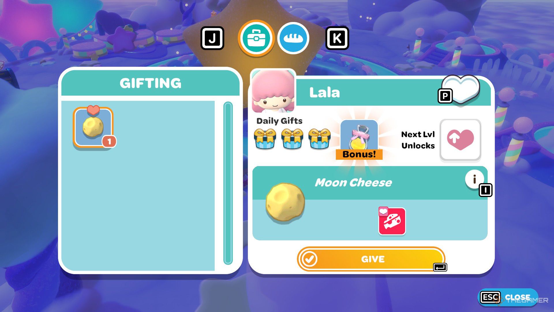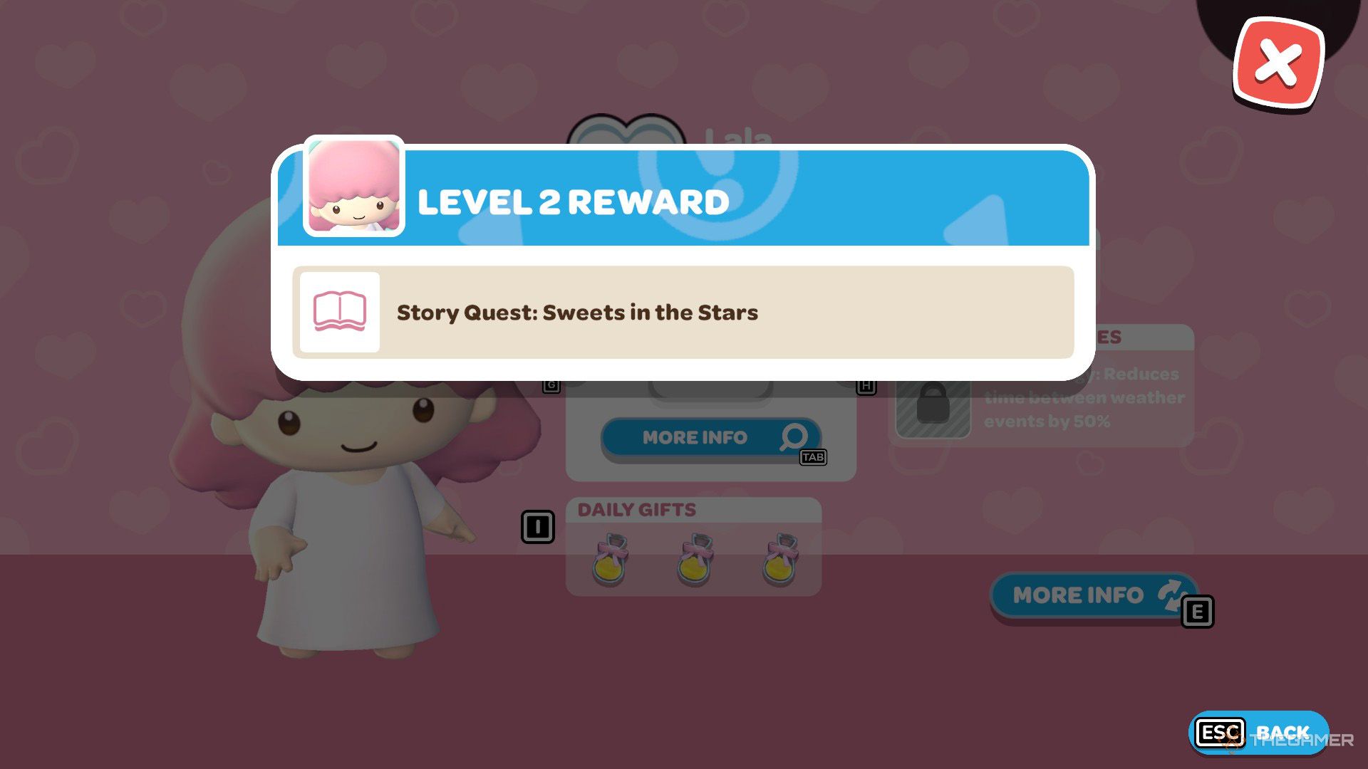キキと比較して、ララに贈り物をすることは、最初にクラウドアイランドでアクセスできるエリアが限られているため、もう少し挑戦的です。彼女に最も簡単な贈り物を与えるには、あなたがする必要がありますキャンディクラウドマシンにアクセスします。これを解除するには、Lalaとの友情のレベル2に到達し、「Sweets in the Stars」クエストを完了する必要があります。