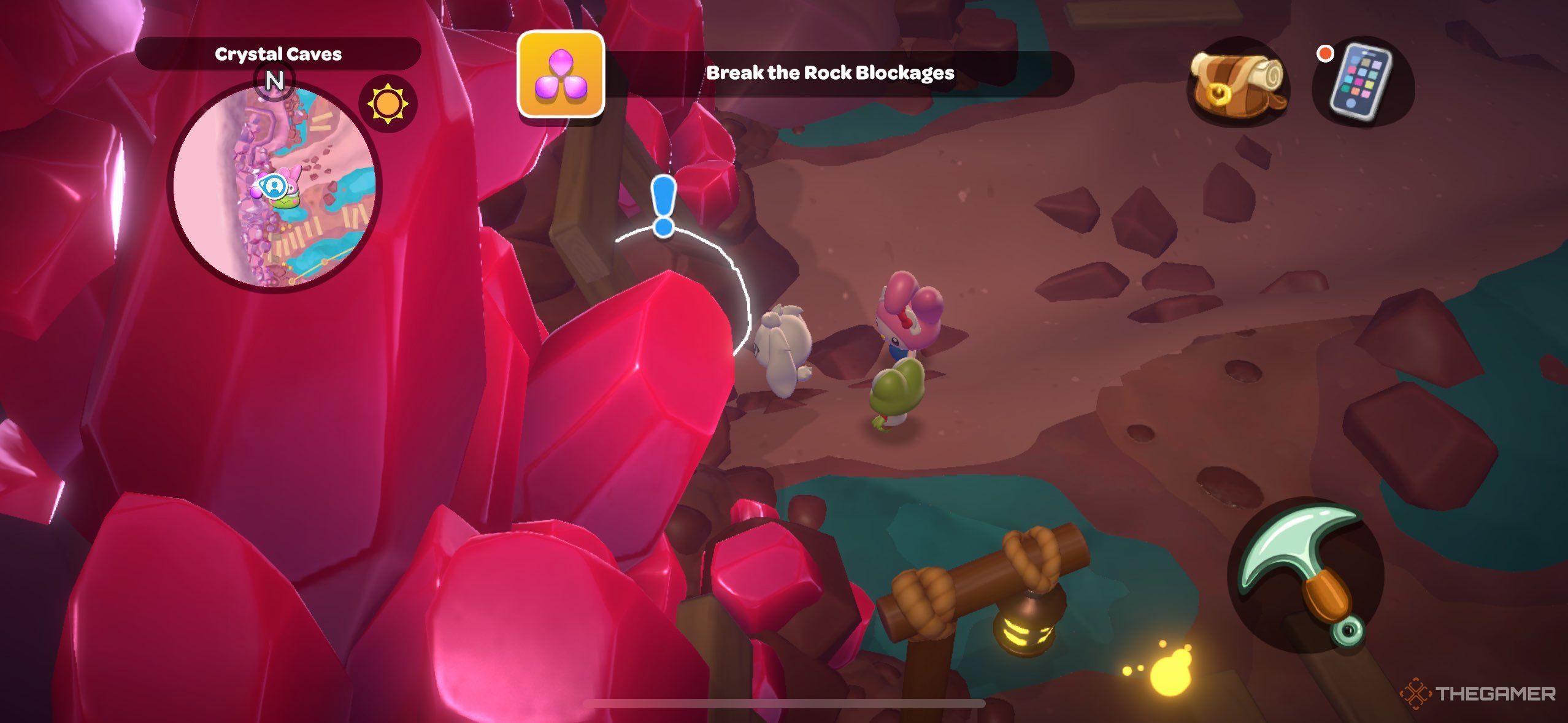 あなたがこれをしている間に向きを変えたとしても、心配しないでください!クエストマーカーはそうします切れ目のない岩の方向に向かって行きます。岩を壊した後、あなたはみんなと話すように指示されますポンパンプリンのボートのすぐ近くの洞窟の外。