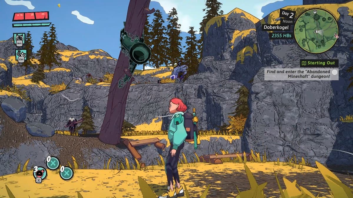 神社に背を向けて、亀裂が入った岩の山が見えます。岩の底にレッキングボールをキャストします、次に、使用するボタンを押して、再度召喚して爆発させます。これは、同じ方法で壊れて放棄された鉱山シャフトへの道を開く別の岩のスタックに連れて行く小さなショートカットです。次に、あなたが立ち上がって道を詰めているログに来るまで、あなたを2番目のダンジョンに向け続ける道と標識に従ってください。