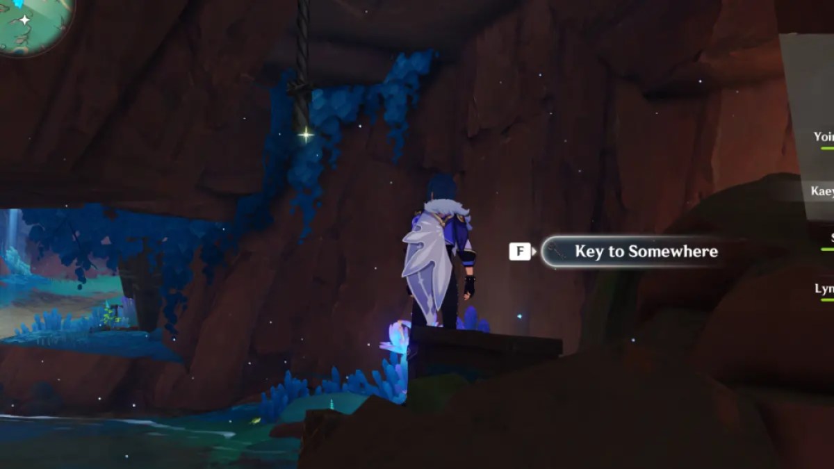 どこかの最初の鍵は、洞窟の遠端にあるケージにあります。 2番目のキーは、貴重な胸の上の天井からぶら下がっているロープの端にあります。胸や近くの箱に登って到達したり、背の高いキャラクターでジャンプすることができます。両方のキーがあると、スイッチをアクティブにしてゲートを開きます。バラチコはゲートの後ろの小さなアリーナで待っています。