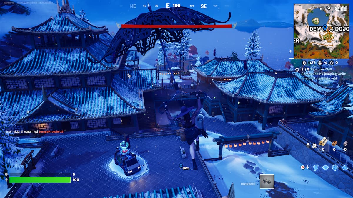 シーズン1の地図であるフォートナイト第6章の北東にある雪に覆われたエリアにあるデーモン・ドジョの夜のバラのデーモンのボスを見つけることができます。メインドホの建物は、夜のバラの悪魔が待っている場所ですので、最初に武器や盾について外側の建物をチェックしてください。