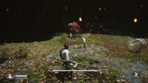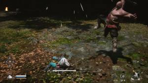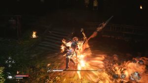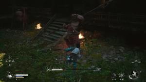 あなたが彼に近づきすぎると、彼は彼のひょうたんから飲み、あなたに向かって火を吐き出します。ありがたいことに、これの間に充電された重い攻撃はあなたを安全に保ち、大きな損害を与えます。