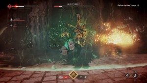 第二に、Hive Tyrantは、アリーナ全体を実際にカバーする脈動する攻撃を行います。それはあなたに届くとダメージを与える緑がかった波を放ちます。緑の波には目に見える線があり、波があなたを襲うので前進することでそれをかわすことができます。この攻撃は複数回行うため、攻撃が終了するまで回避に集中するのが最善です。この攻撃は、キャンペーンのニューロスロープボスにも似ています。ある意味では、ハイブの暴君はニューロスロープとカーニフェックスのボスのハイブリッドのようなものです。