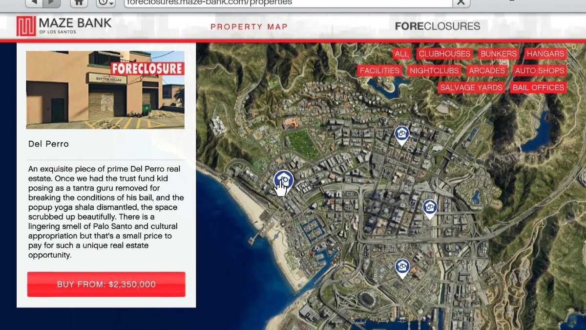 ロスサントスで利用可能な4つの保釈債のオフィス、1つはパレトベイにあります。 GTAオンラインで保釈オフィスを最小限から最も高価にまで購入できるすべての場所があります。