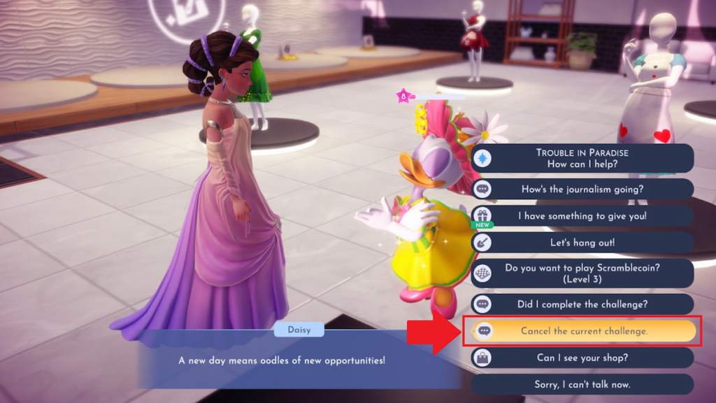 - デイジーと話してください。ブティックで彼女を見つけて、彼女と交流して、利用可能なすべてのダイアログオプションを引き出します。