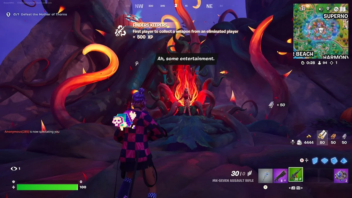 | いばらの母を倒す | Freaky Fields または Creepy Camp で Doja Cat (別名 Mother of Thorns) を見つけてください。 |
