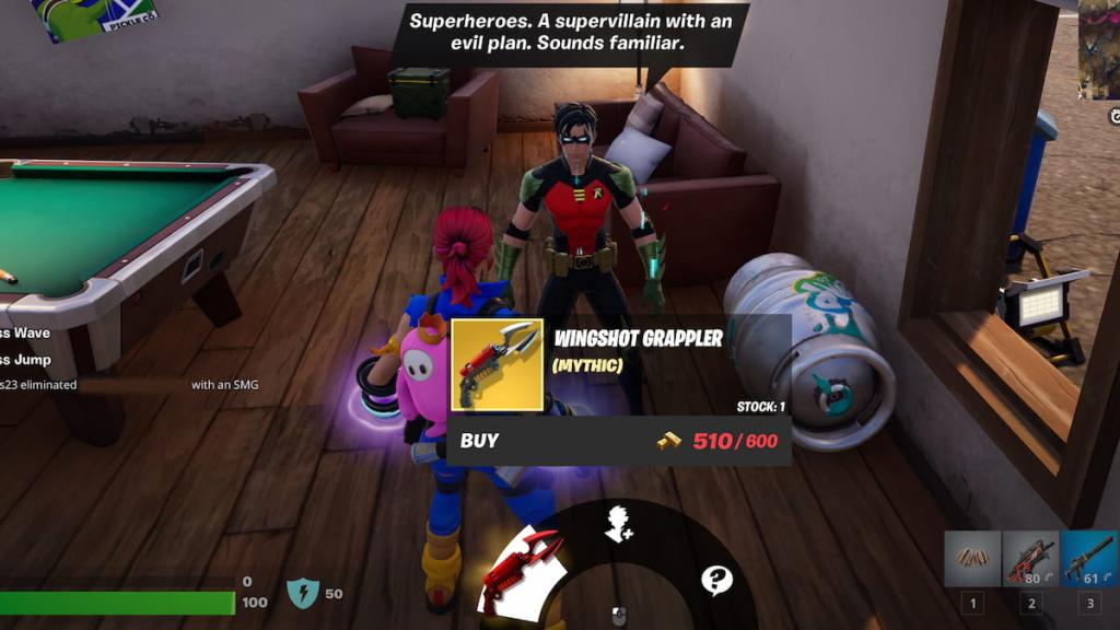 | ウィングショットのグラップラーを集めるか、ロビンから購入します。 | 別のプレーヤーにドロップされたウィングショットのグラップラーを主張するか、600個の金のバーでロビンから購入します。 |