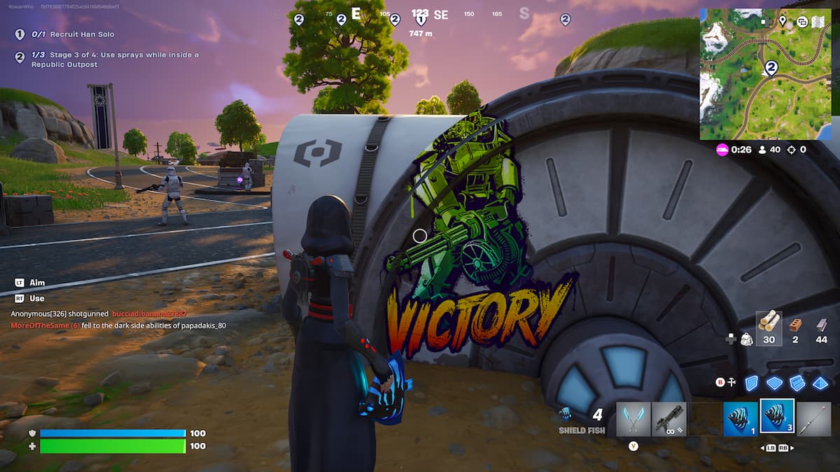 Jar Jarのストーリークエストのこの第3段階を完了するためにどこにでも移動する必要はありません。共和国の前post基地を訪れている間、スプレーエモートを装備し、3つの壁を散布してください。共和国の前post基地内で3回行う限り、任意のスプレーを使用できます。